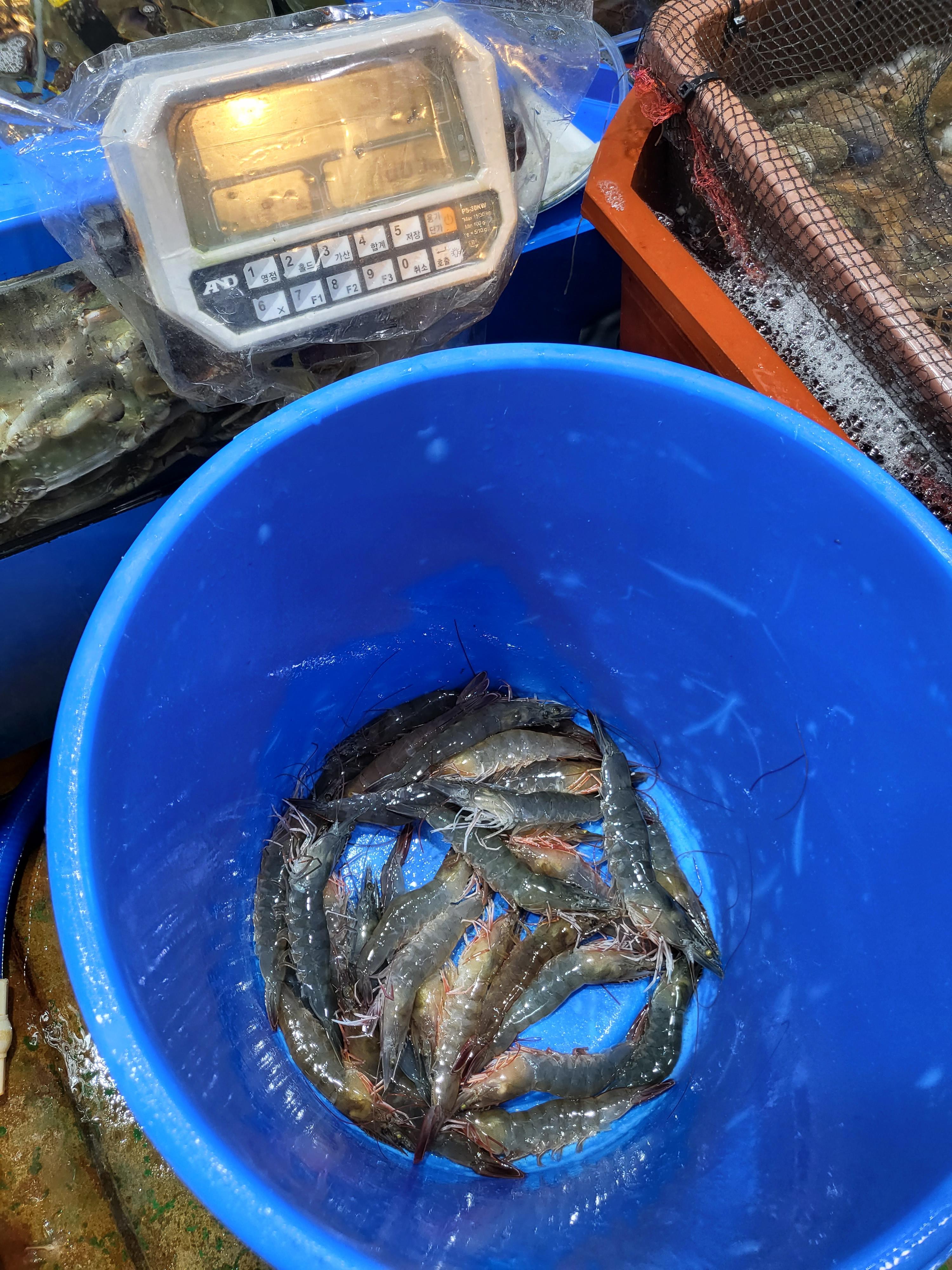 새우는 1kg 당 25,000원이고
